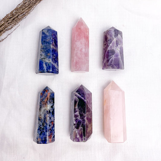 Trio of crystal towers - Rose quartz, Chevron Amethyst + Sodalite points bundle