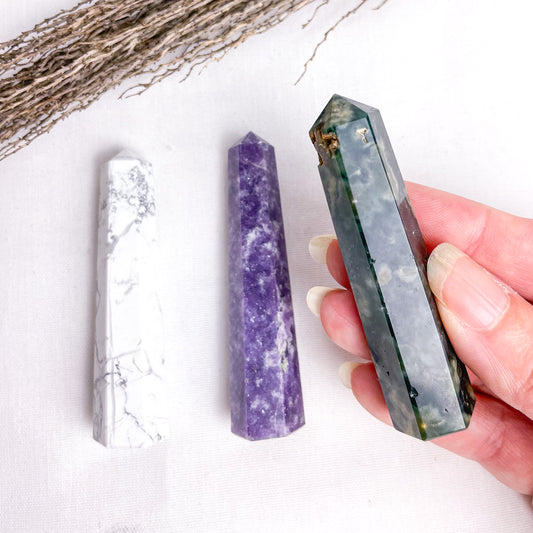 Trio of crystal ring holder towers - Lepidolite, Howlite + Ocean jasper points bundle