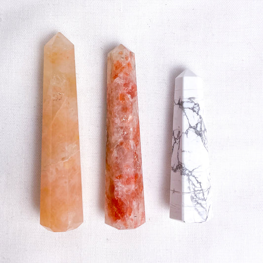 Trio of crystal ring holder towers - Sunstone, Fire quartz + Howlite points bundle