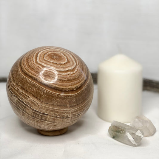Aragonite crystal sphere with ring stand 2kg
