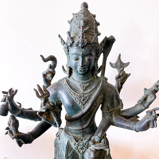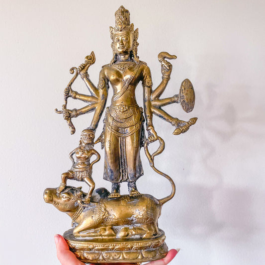 Antique lost wax brass Goddess Durga on buffalo demon statue