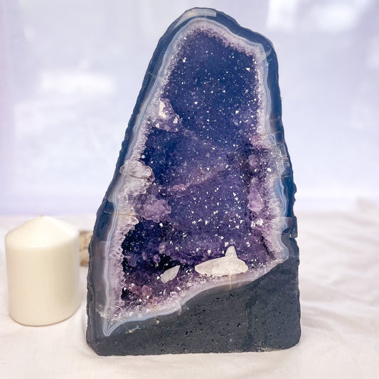 Amethyst, Clear Quartz + Blue Lace agate crystal geode cave cathedral 29cm XL