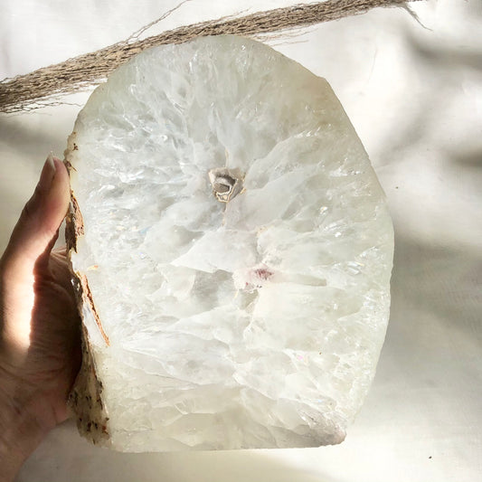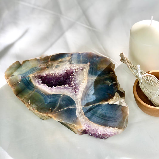 Blue Lace Agate + Amethyst crystal geode thick slab L