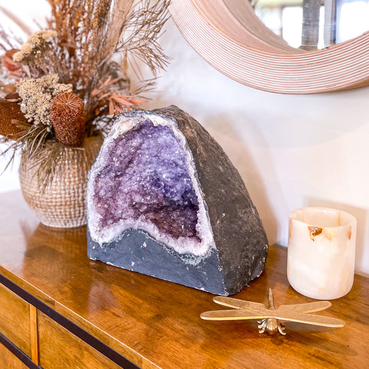 We offer a spectacular range of unique crystal caves, crystal cathedrals and crystal geodes. A crystal geode holds and amplifies energy within. The cave-like shape and many crystal points diffuse and amplify energy, allowing it to flow slowly and evenly into your home.