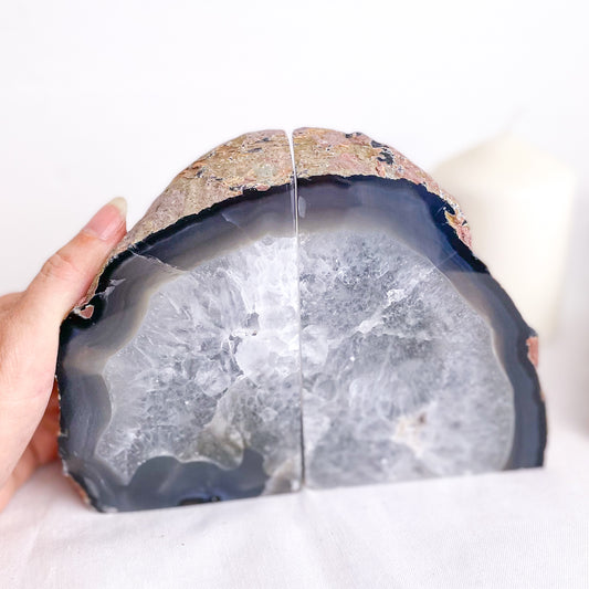 Natural Agate crystal geode stone bookend pair grey XL 2