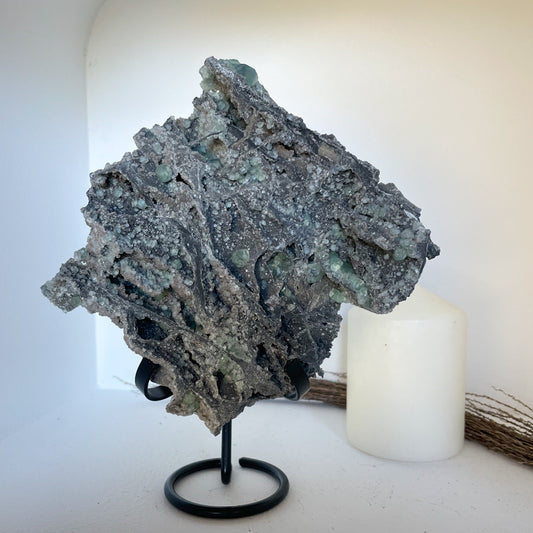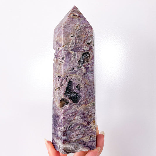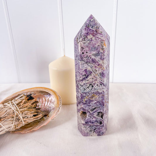 Purple Fluorite + druzy sphalerite crystal generator tower XL 18cm