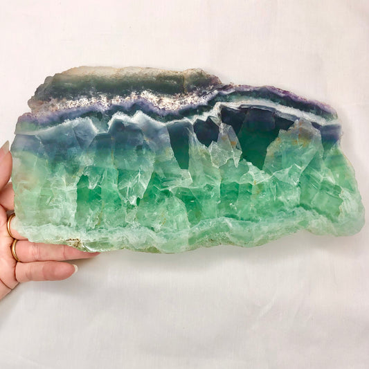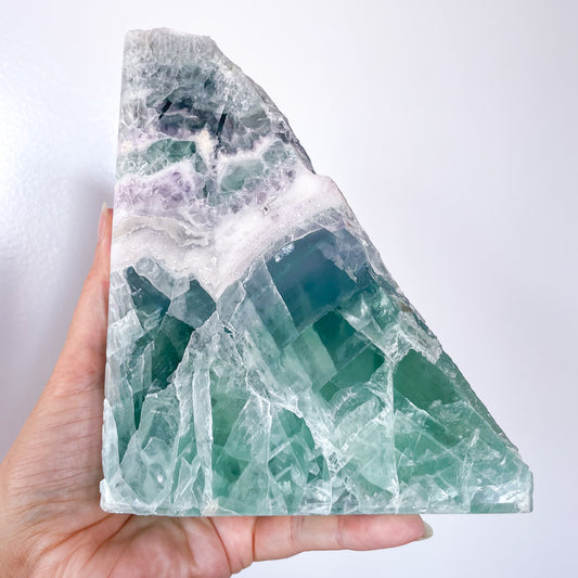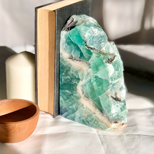 Fluorite green blue purple polished crystal bookend pair 3.4kg