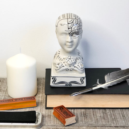 Phrenology head inkwell statue