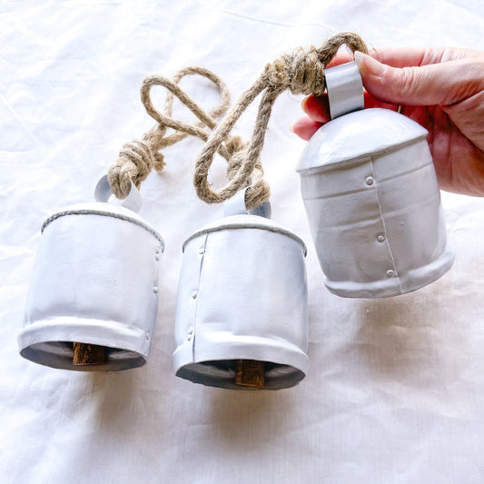 Set of 3 white cow bells wind chime