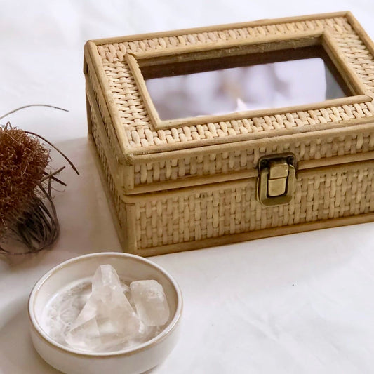 Rattan weave glass top storage box