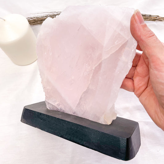 Rose quartz crystal lamp raw + polished generator tower