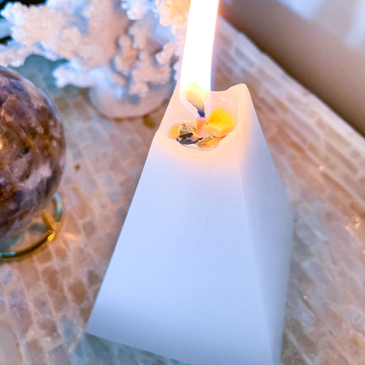 Pyramid crystal candle hand dipped unscented non toxic wax