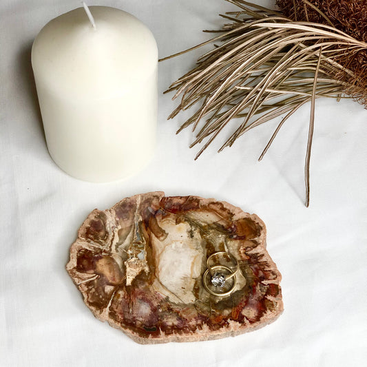 Quartz crystal fossil wood slice slab / ring tray 12