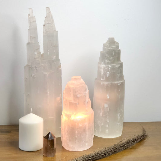 Selenite crystal tower lamp