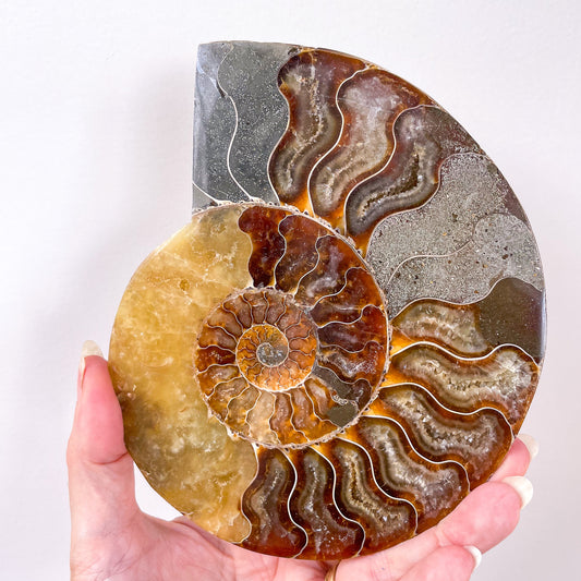 Ammonite half fossil crystal shell XL