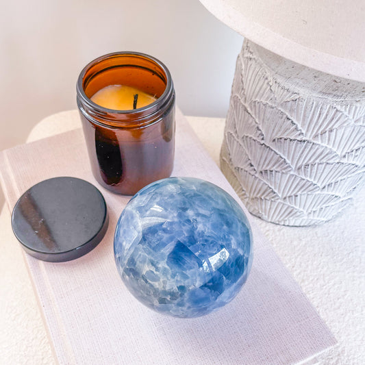 Blue Calcite crystal sphere 750g
