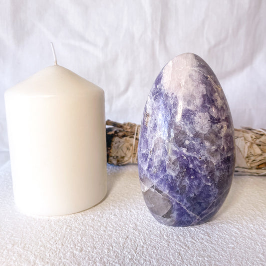 Lepidolite, Smoky Quartz, Tourmaline, Aquamarine + Charoite crystal statue