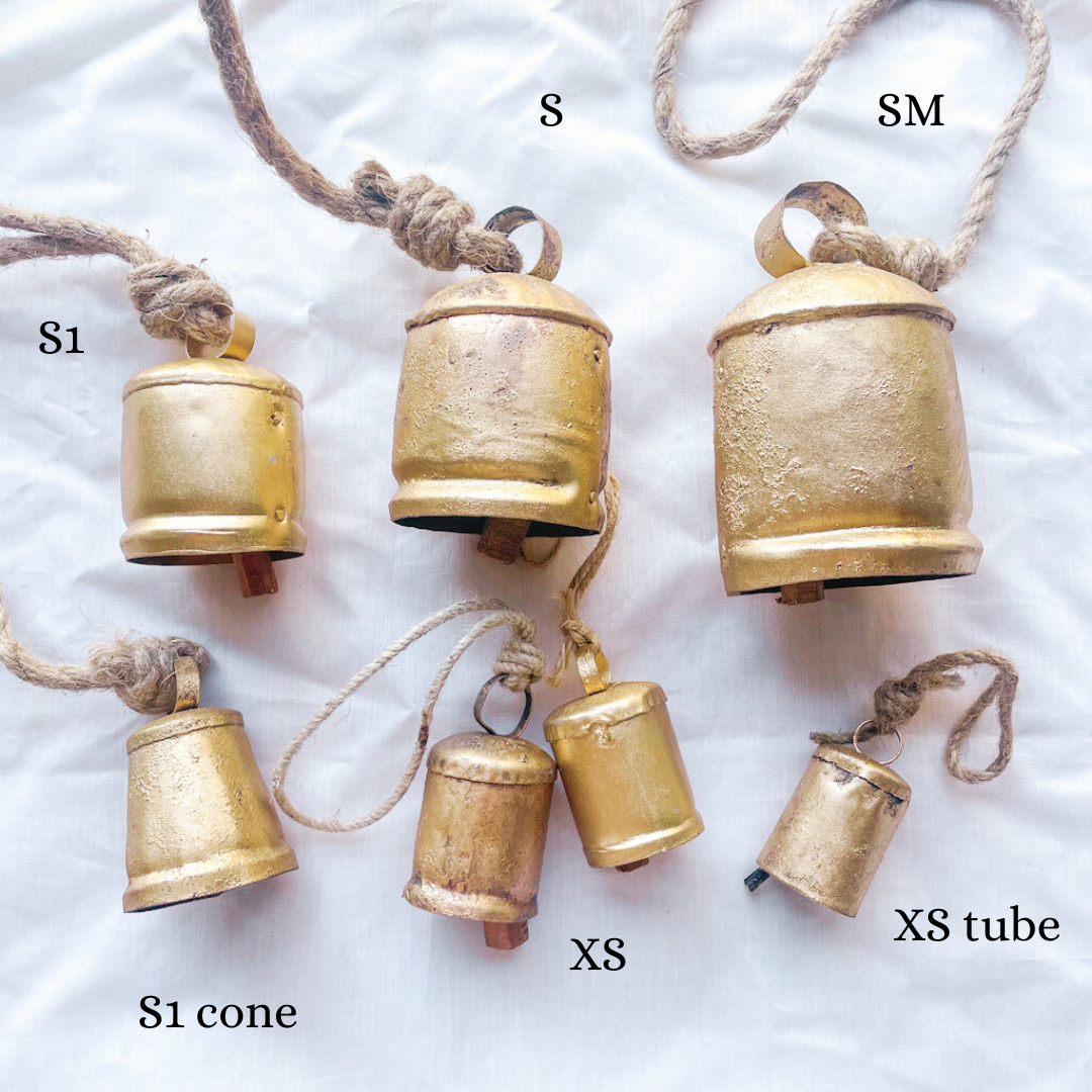 AFTERPAY & PAYPAL AVAILABLE - CONTACT US TO LAYBUY THIS Cow bell in rusted brass iron (gold Christmas bell).